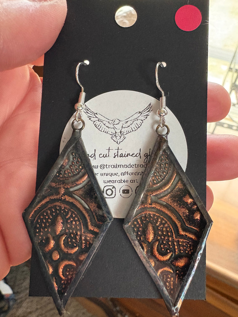 2” Rhombus Orange Van Gogh Stained Glass Earrings