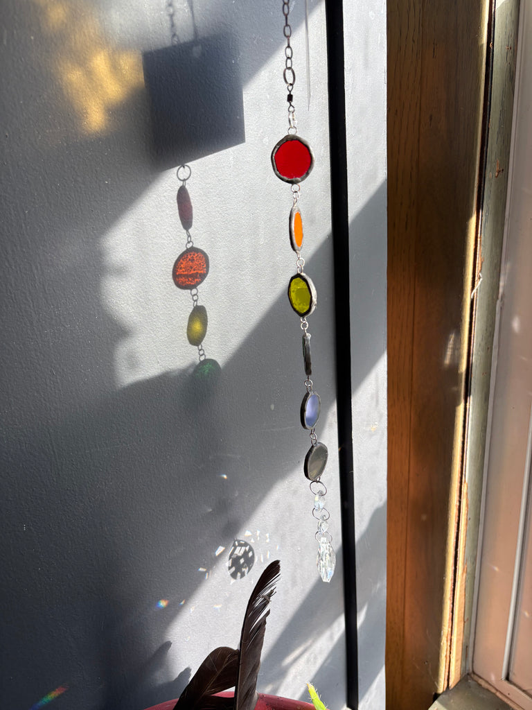 1” Stained Glass circles in various textures The crystals will produce rainbows when the light hits just right!