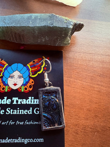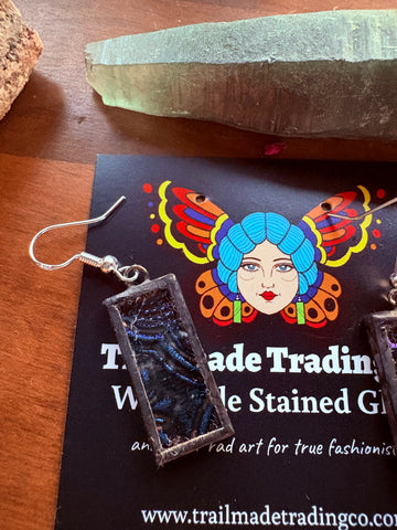 Hand cut stained glass pieces made in Tiffany style with copper foil and lead free solder. They weigh 3- 6grams. For reference a US quarter weighs 6 grams. They have .925 silver hypoallergenic hooks.